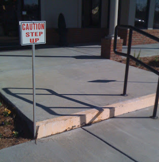 It's one thing to have the step painted yellow... and the banister... but did we really need the sign, too? There's one on the other side also! Obviously someone has tripped over this tremendously high and inconspicuous step before enough times that it prompted them to have to take all 3 measures (I'm hoping only one at a time) to make it more visible. Stupid people really amuse me sometimes.